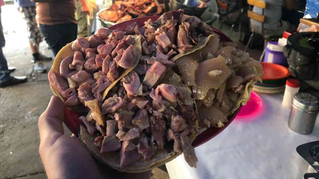 Pasemos directamente a lo importante, aquí hay dos tipos de buffet, el «sencillo» que, como ya lo mencionamos, te permite comer todos los tacos, quesadillas y refresco que puedas, solo que el detalle es que únicamente podrás pedir tacos de surtida, y tiene un precio de $47 pesos por persona.